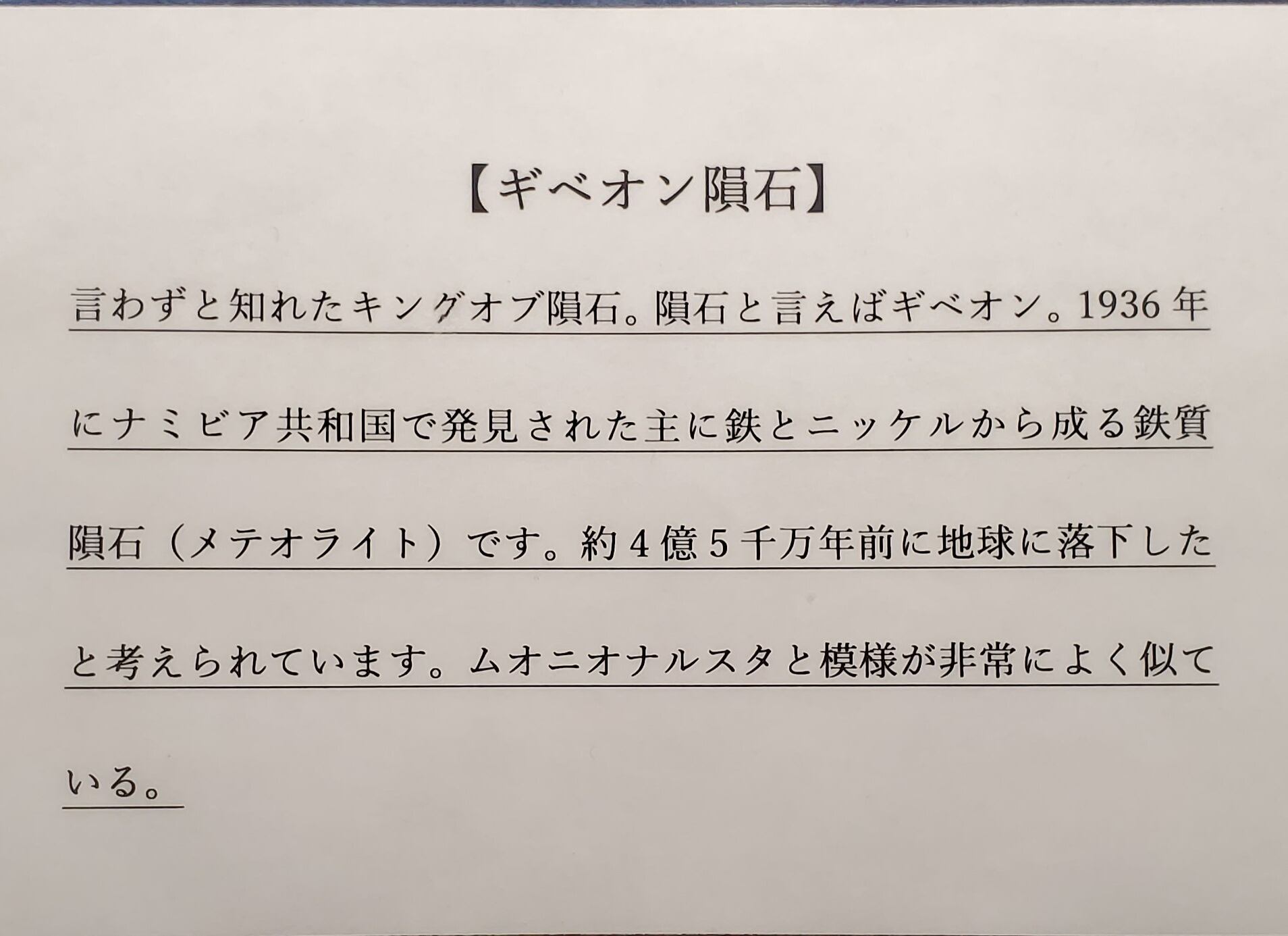 ギベオンのスライスです。隕石といえばギベオン☆