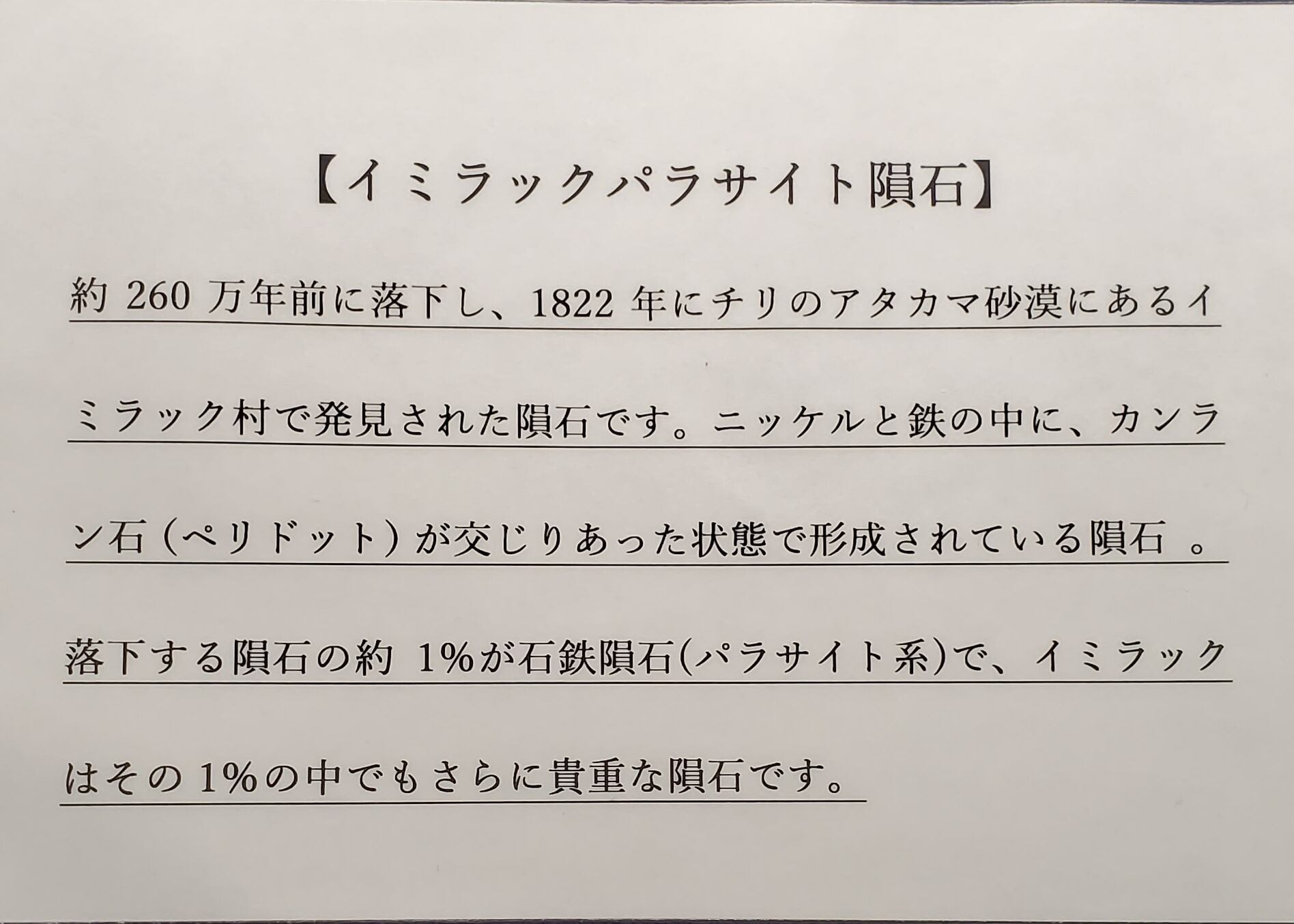 イミラックは隕石の中でもさらに貴重なもので、他の隕石に比べて錆びにくいのも特徴です。